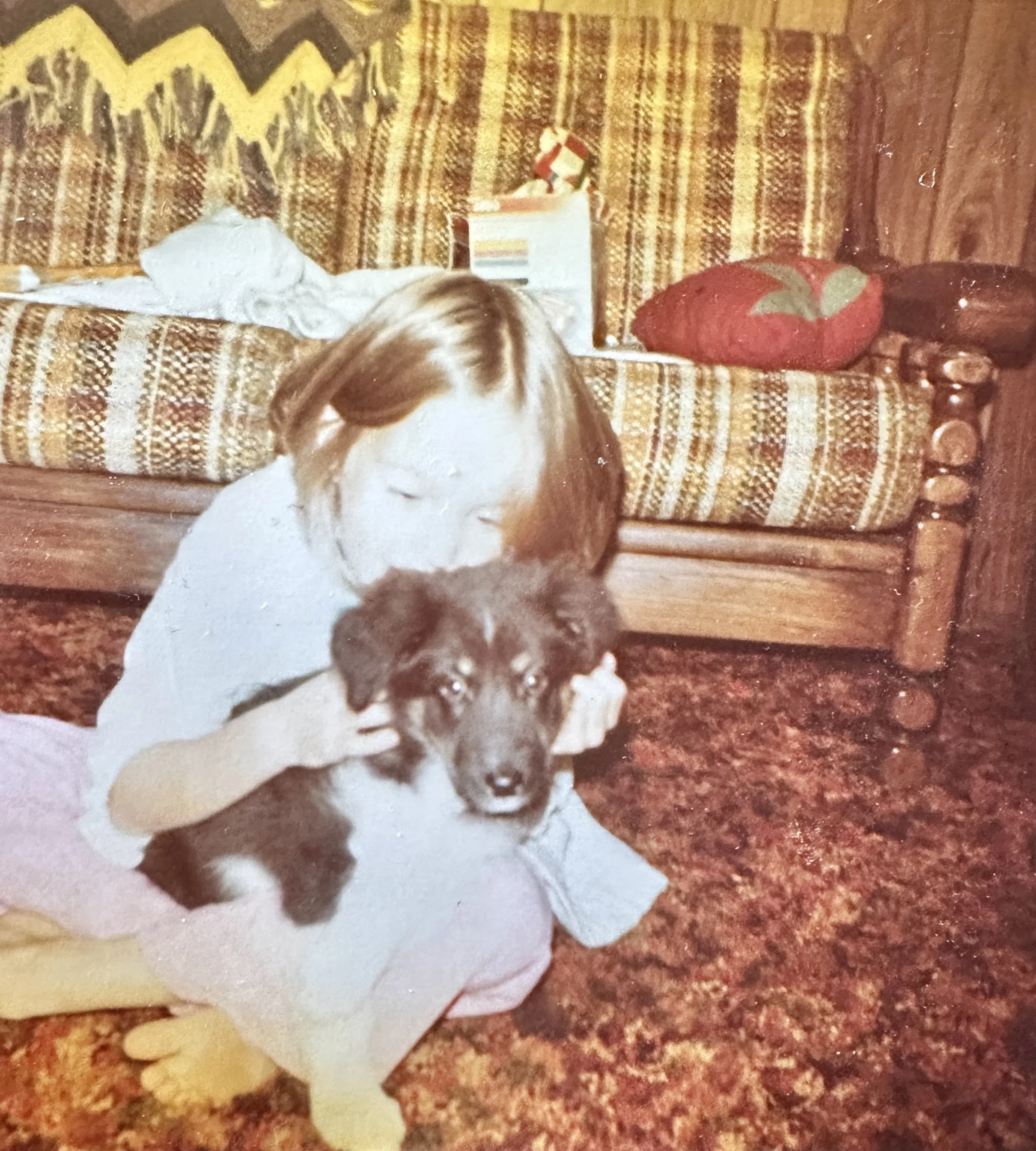 8 year old me with Pepper, our border collie/husky mix dog. 1975. That dog was my lifeline until he died in 1983 when I was 16 years old.